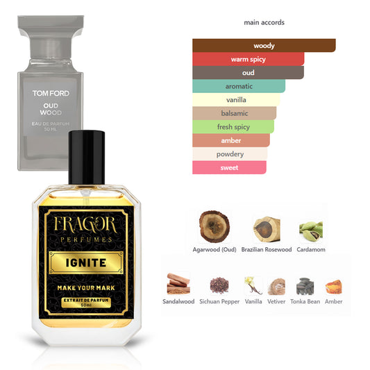 Ignite by Fragor Perfumes: Elite Luxury Impression of Oud Wood – High-Concentration Extrait de Parfume (50ml)